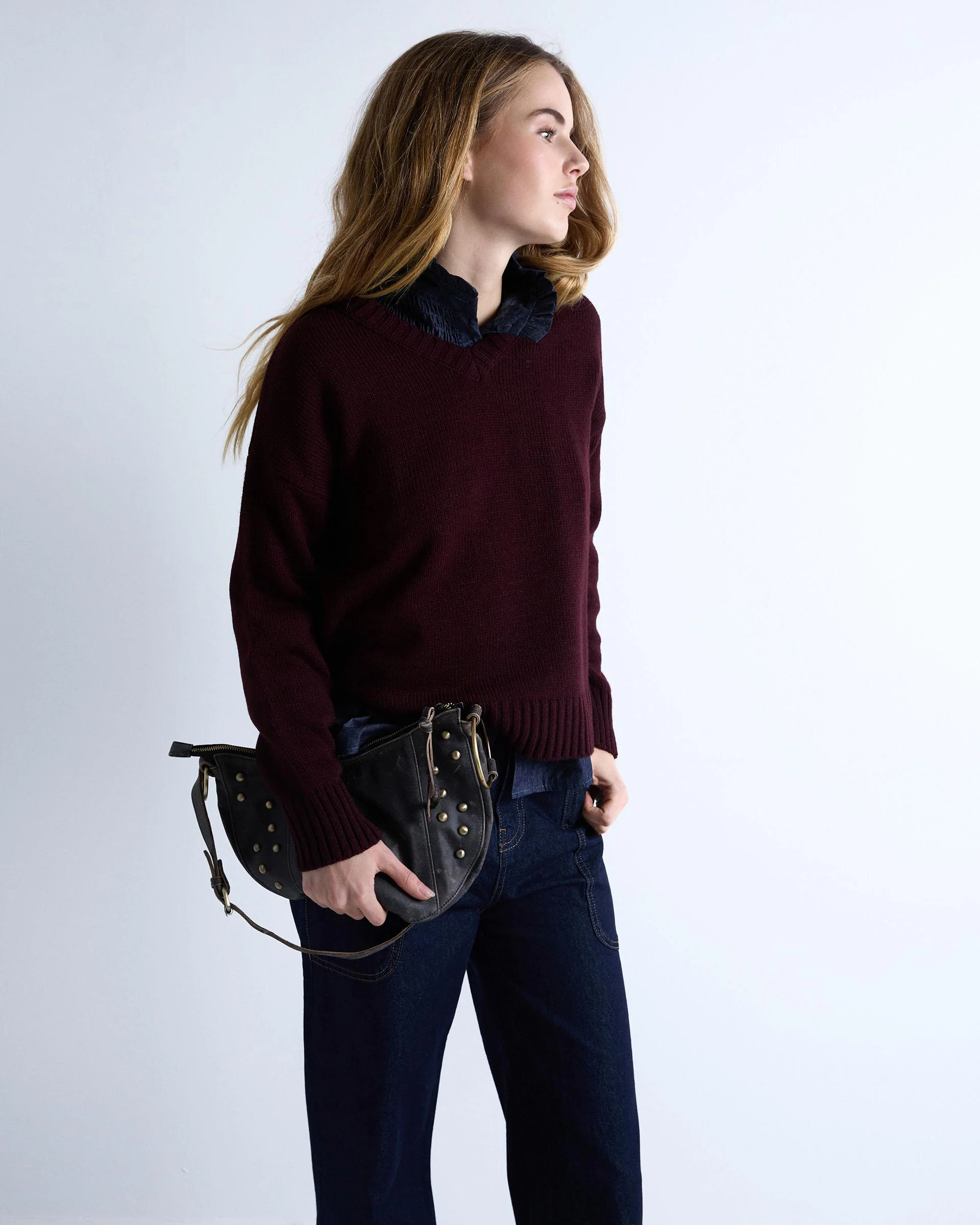 Jersey de color granate con cuello en pico y detalle de rib.