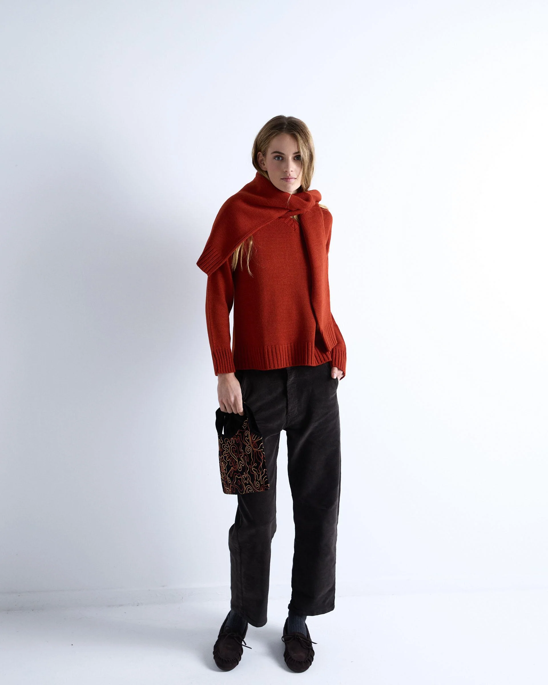 Jersey de color naranja con cuello en pico y detalle de rib.
