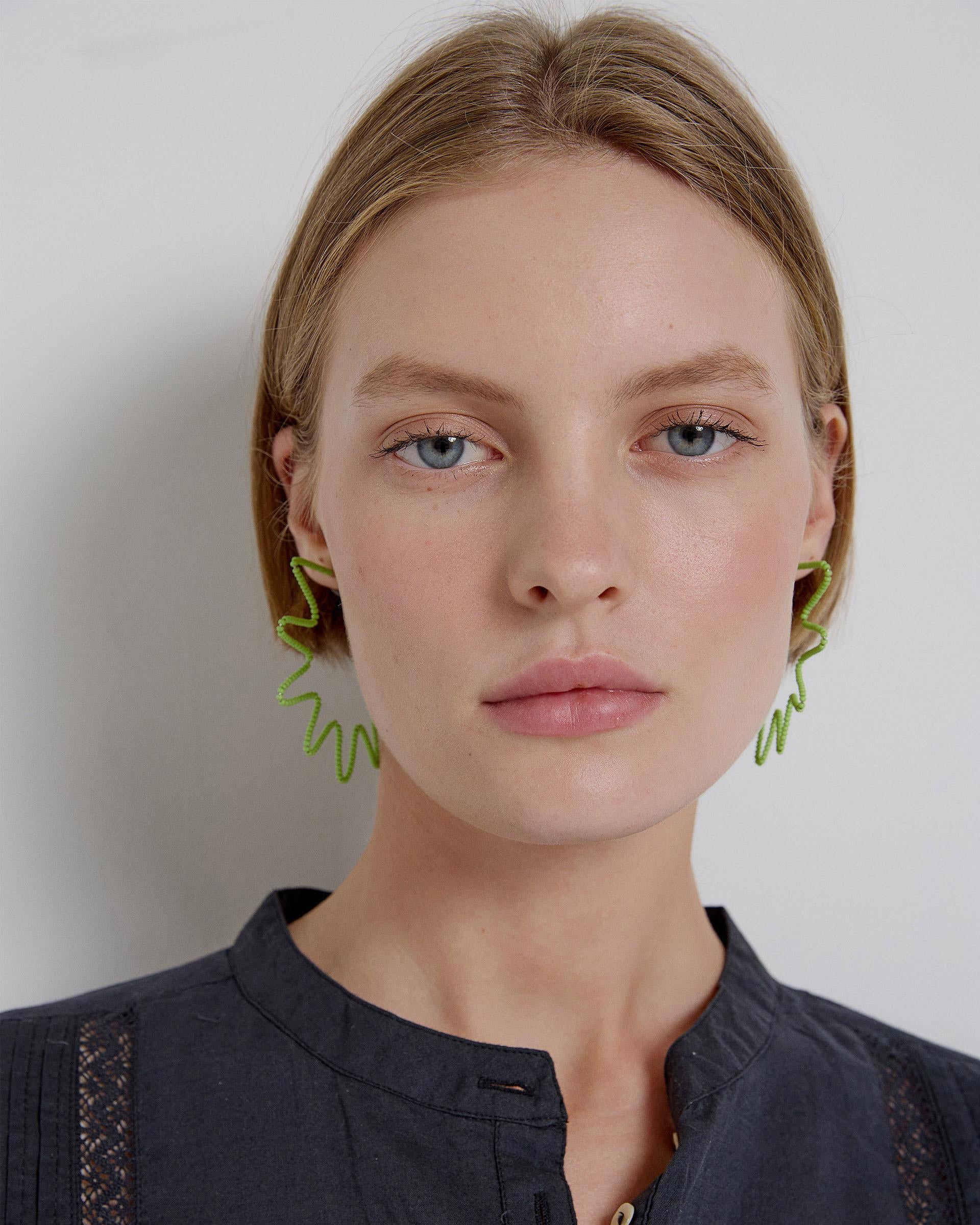 Pendientes en forma de media estrella de color verde.