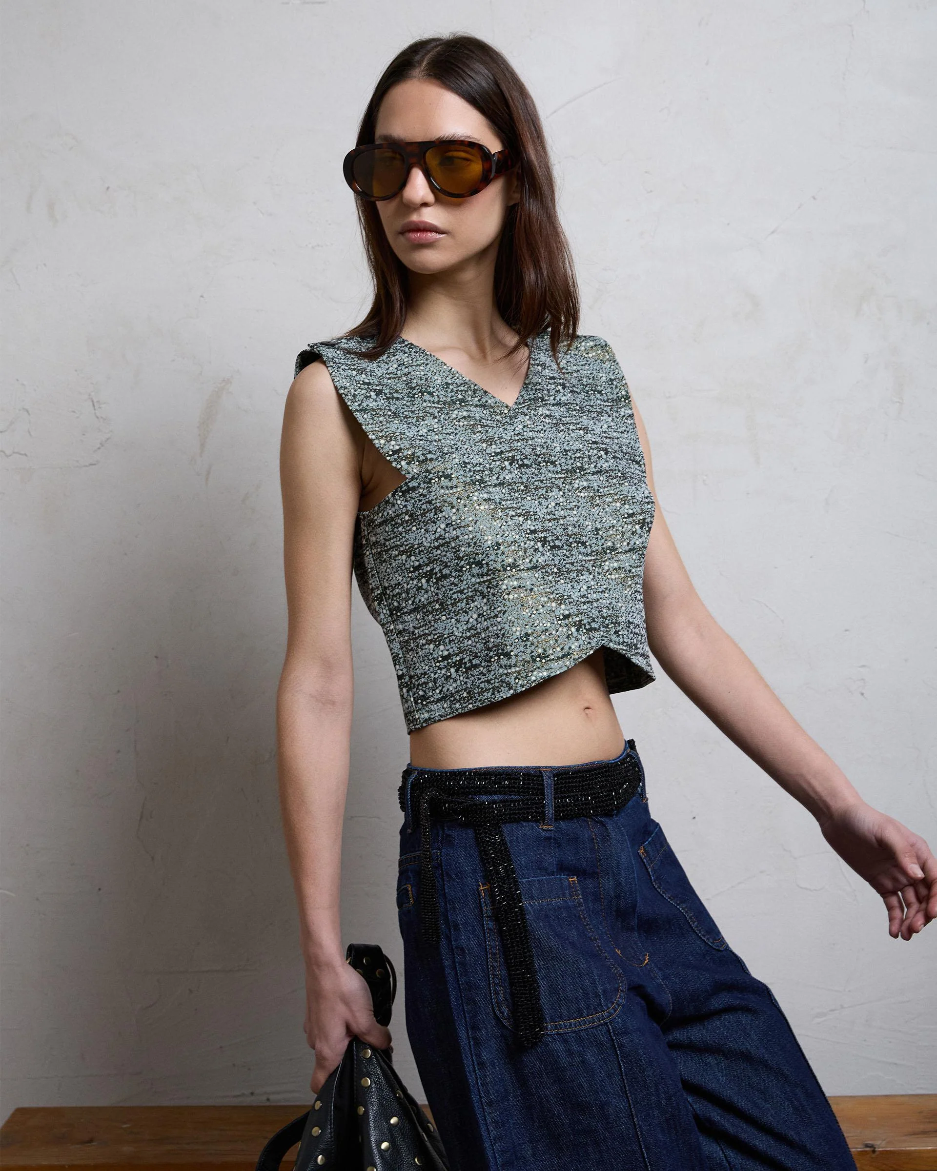 Top Cruzado Tejido Rayas Lurex Negro